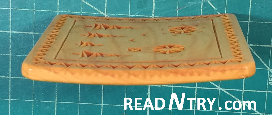 Probably half of my chip carved coasters are noticeably cupped, as they are only 1/4″ (6 mm) thick. Let me share what I do about that issue. In most cases, I don’t try making them flat as I enjoy using them as is. I like to see how my cup of tea rocks a little on a table. Of course, it is not very convenient to use a tall wine glass with a cupped coaster. I use that pictured coaster with my morning cup of tea.