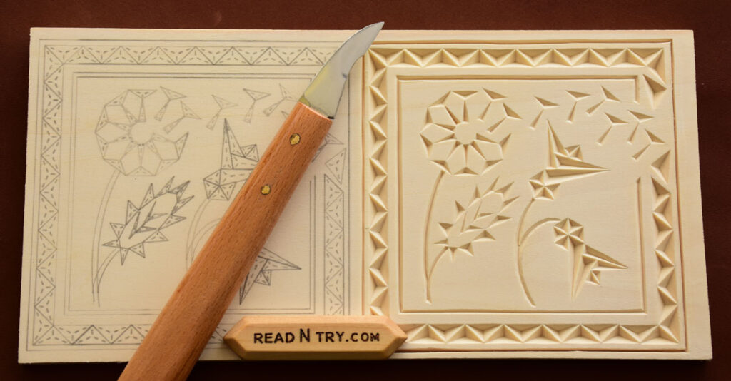 Even though some patterns below depict easily recognizable things this is not a free style chip carving. These chip carving patterns can be carved using simple classic chip carving techniques.