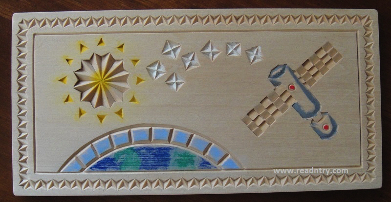 Chip carving most often uses triangles and less often lines, rectangles, and other shapes. Repetition of triangles of various shapes and sizes generates an unlimited number of entangled elements that can be used to decorate flat surfaces such as benches, cutting boards, spoon handles, coasters, etc.