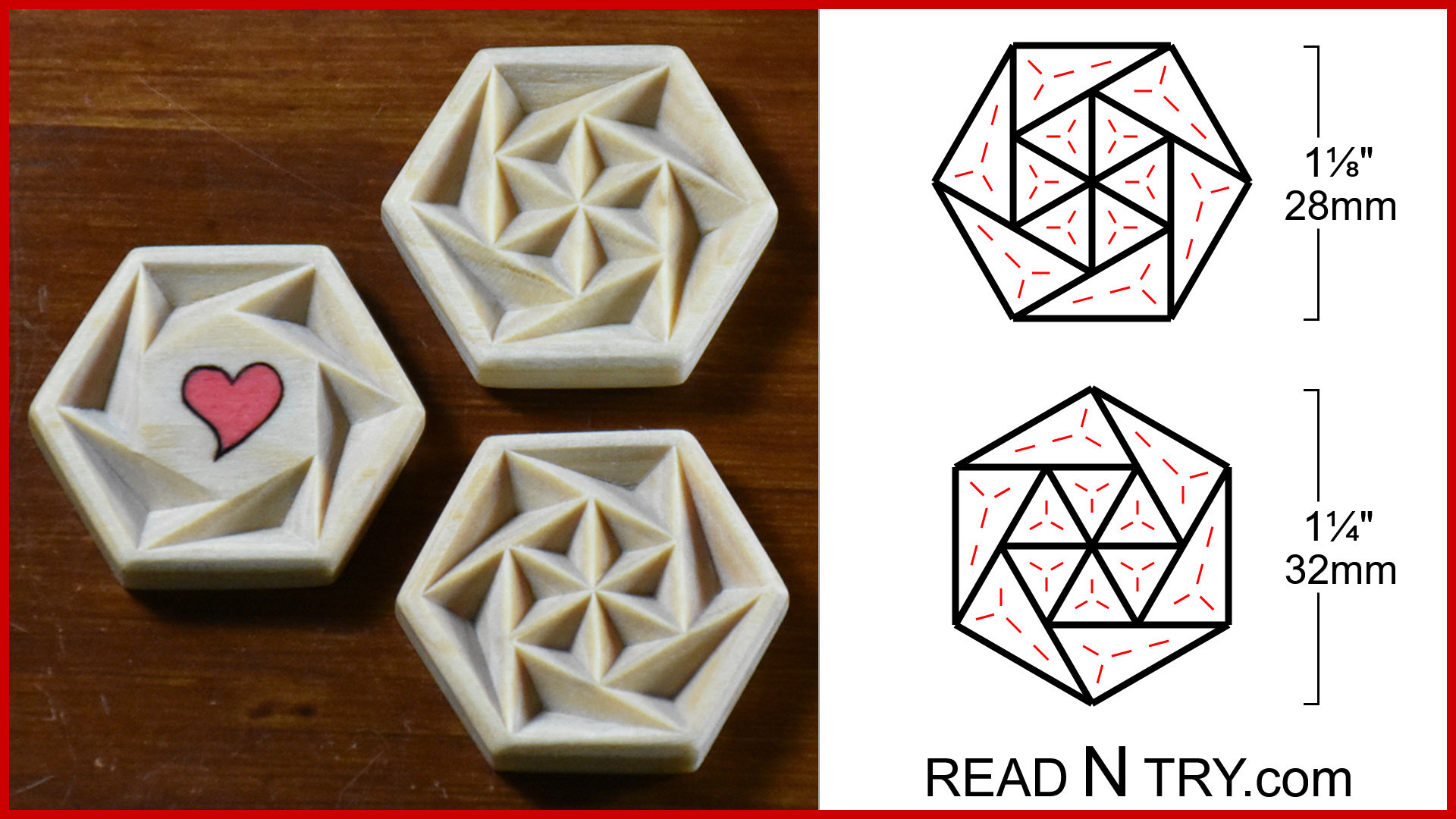 You may see more free chip carving patterns on the READ N TRY Pinterest board. If you tried any of these free chip carving patterns please send me a picture of your carving.
