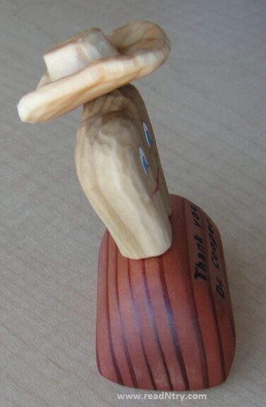This woodcarving project is a gift to my dentist, Dr. Cooper. A tooth in a cowboy hat is a symbol of a dental crown. Dr. Cooper and his team make every effort to deliver quality results. In fact, I have gotten two crowns today that I am very happy about.